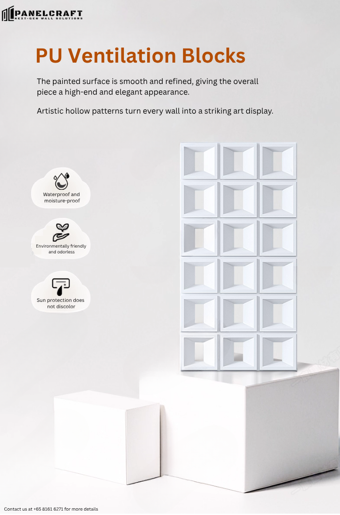Turn any wall into a gallery-worthy feature with these beautifully designed hollow blocks, perfect for adding ventilation and style. Whether for homes, offices, shops, or landscaping, these PU ventilation blocks deliver both function and flair.